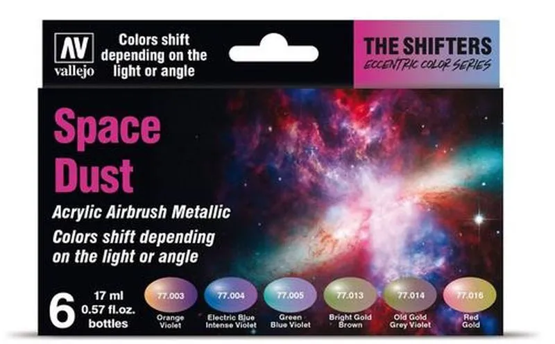 The Vallejo Colorshift Space Dust Set is a premium paint collection featuring color-shifting metallics that change tone under varying angles of light. Perfect for sci-fi miniatures, robotic armor, spacecraft, and cyberpunk themes, these paints give your models a futuristic, dynamic look with minimal effort.